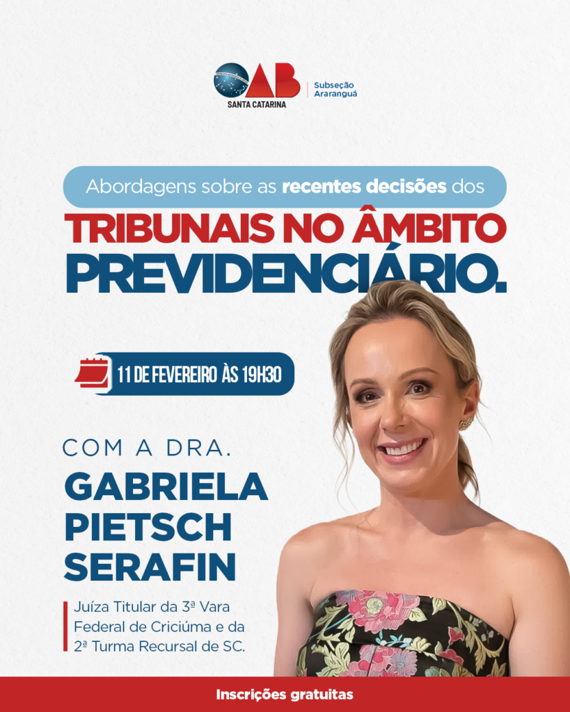 A Subseção de Araranguá da OAB/SC convida toda a advocacia...